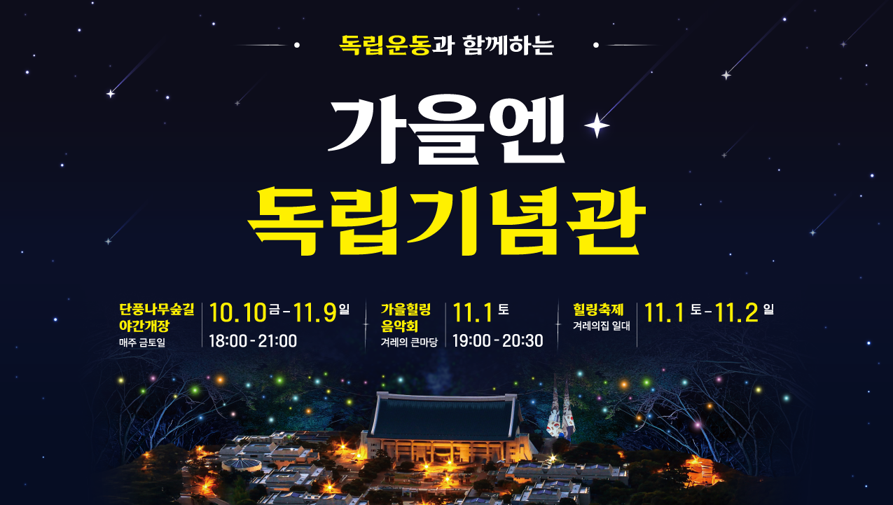 - 독립기념관, 2025년 하반기 단풍나무숲길 야간개장 실시 2025. 10.10