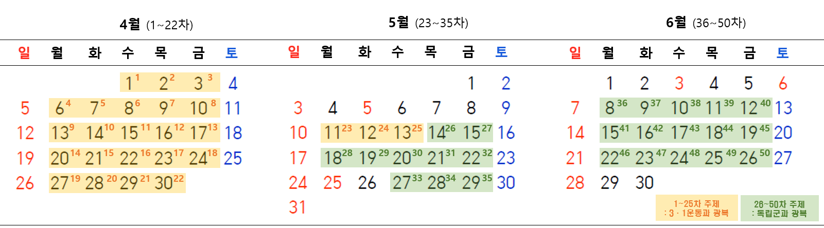 [26~50차(5/14~6/26)] 주제2_독립군과 광복(80분)