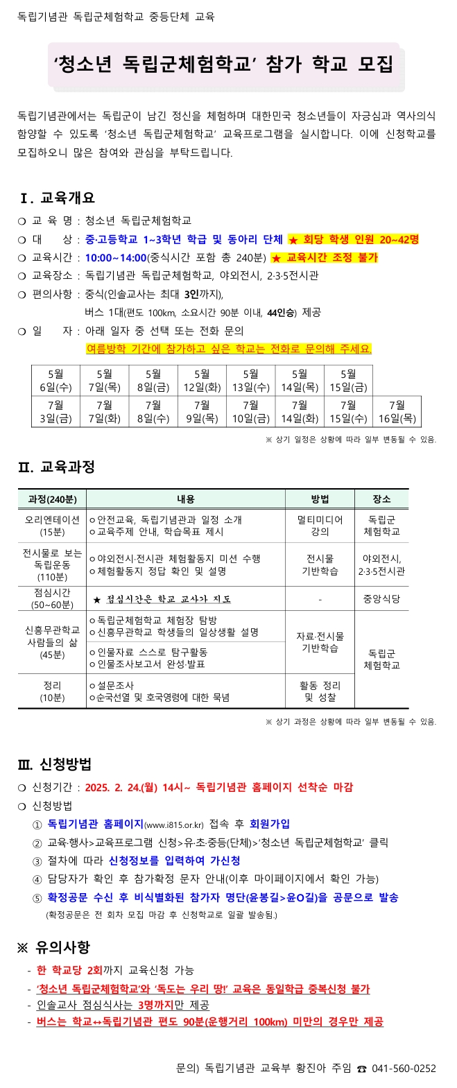 어린이·청소년(단체) 선착순 인터넷 전화 이메일