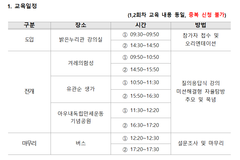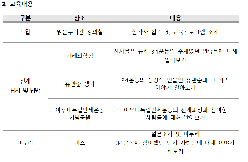 - 교 육 명: 독립기념관 토요나들이 답사편 -꼬리에 꼬리를 무는 3·1운동 이야기-