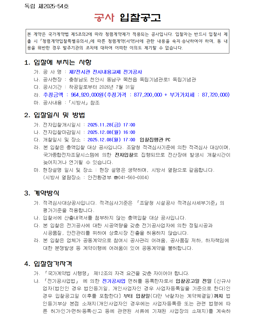 제7전시관 전시내용교체 전기공사