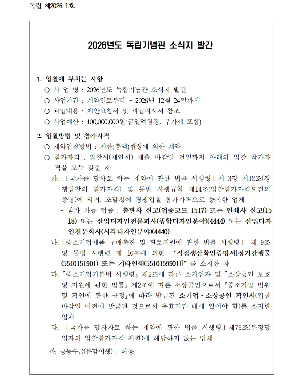 2026년 독립기념관 소식지 제작