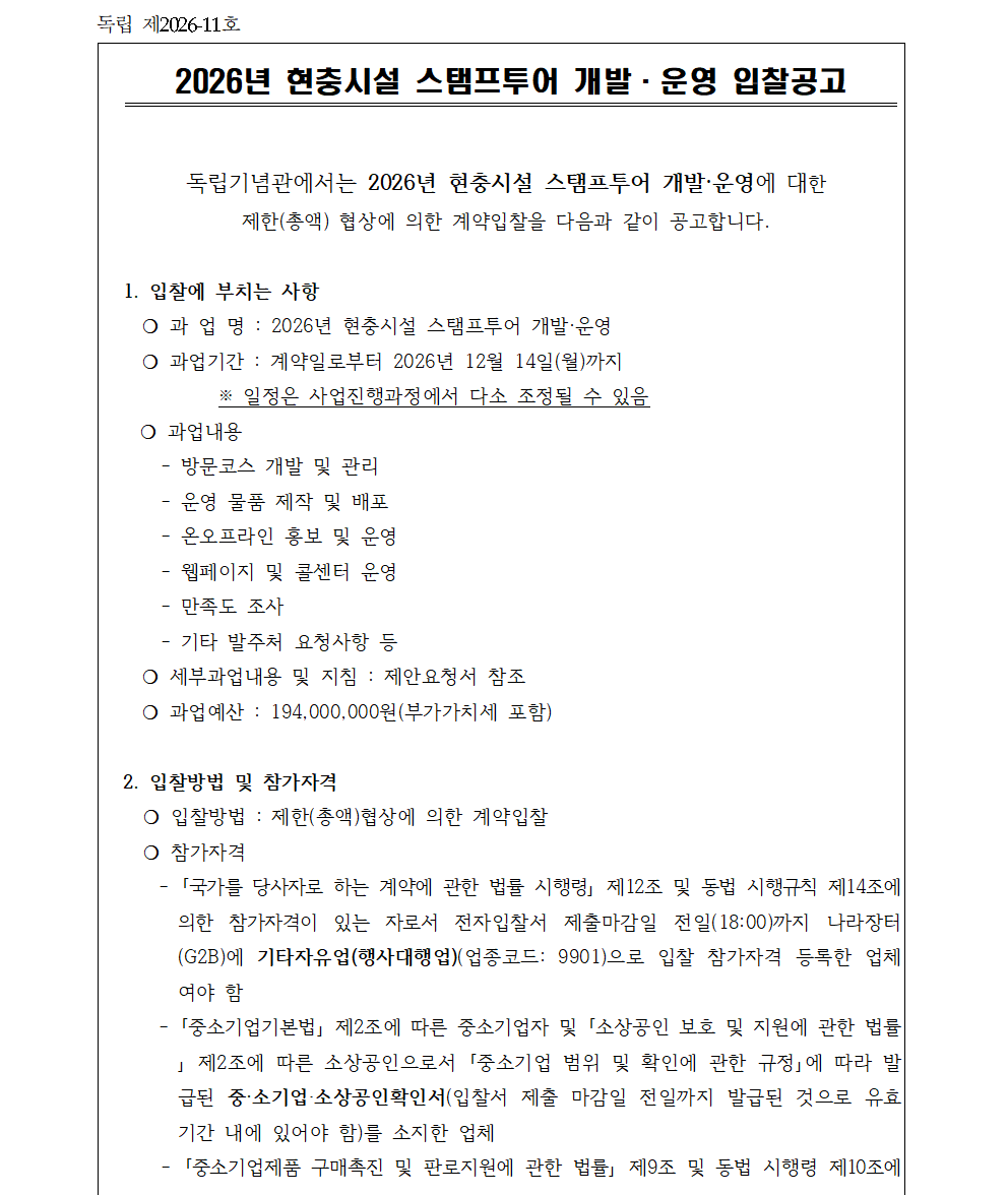 2026년 현충시설 스탬프투어 개발·운영