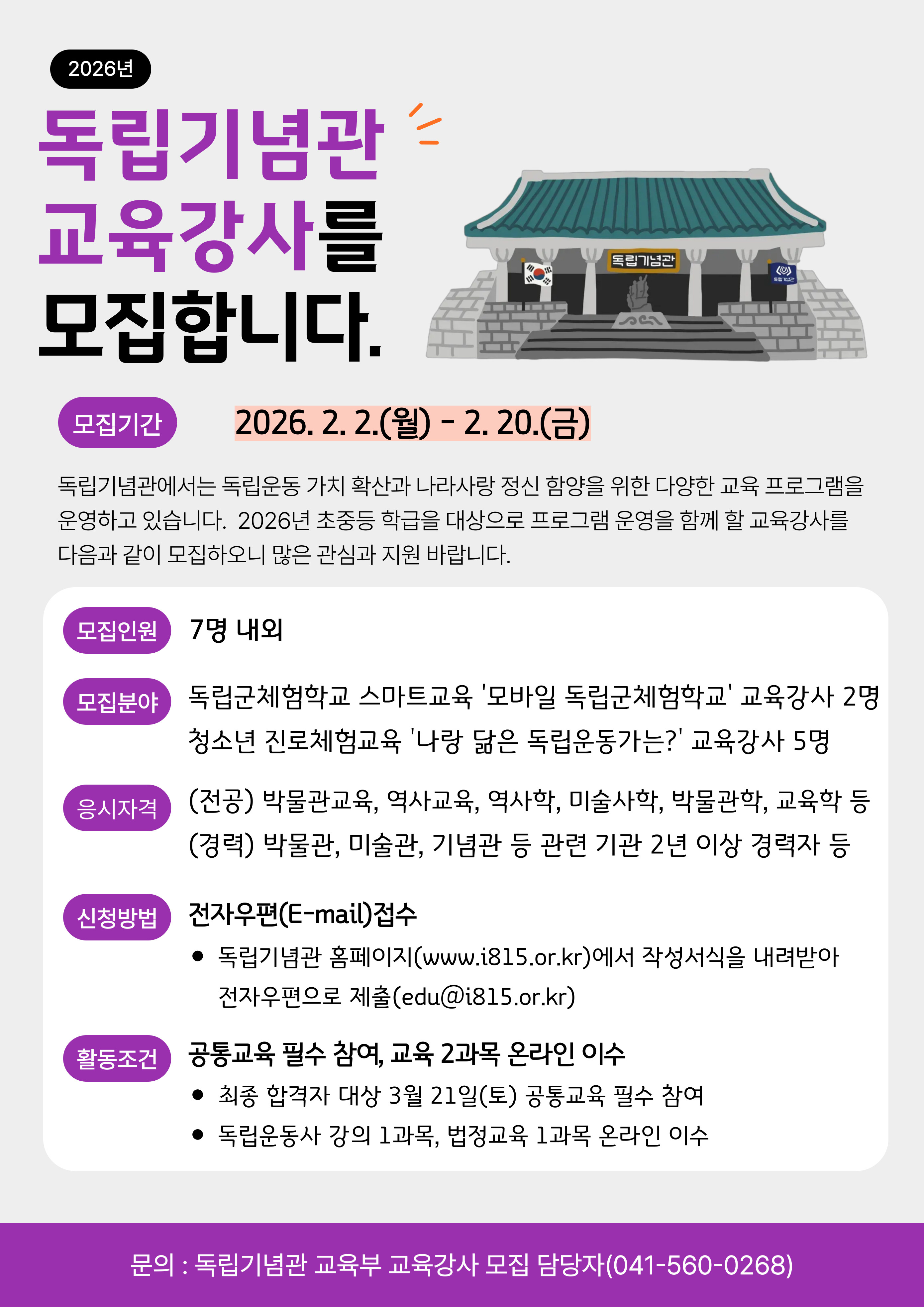 1. 모집대상 : 2026년 독립기념관 교육강사