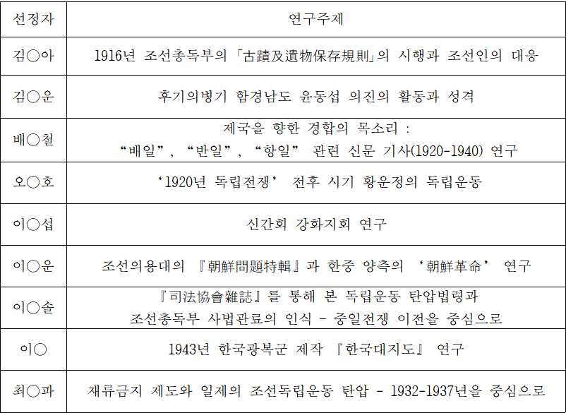 2026년도 독립기념관 신진연구자 연구지원 공모 결과 다음의 연구주제가 선정되었음을 알려드립니다.