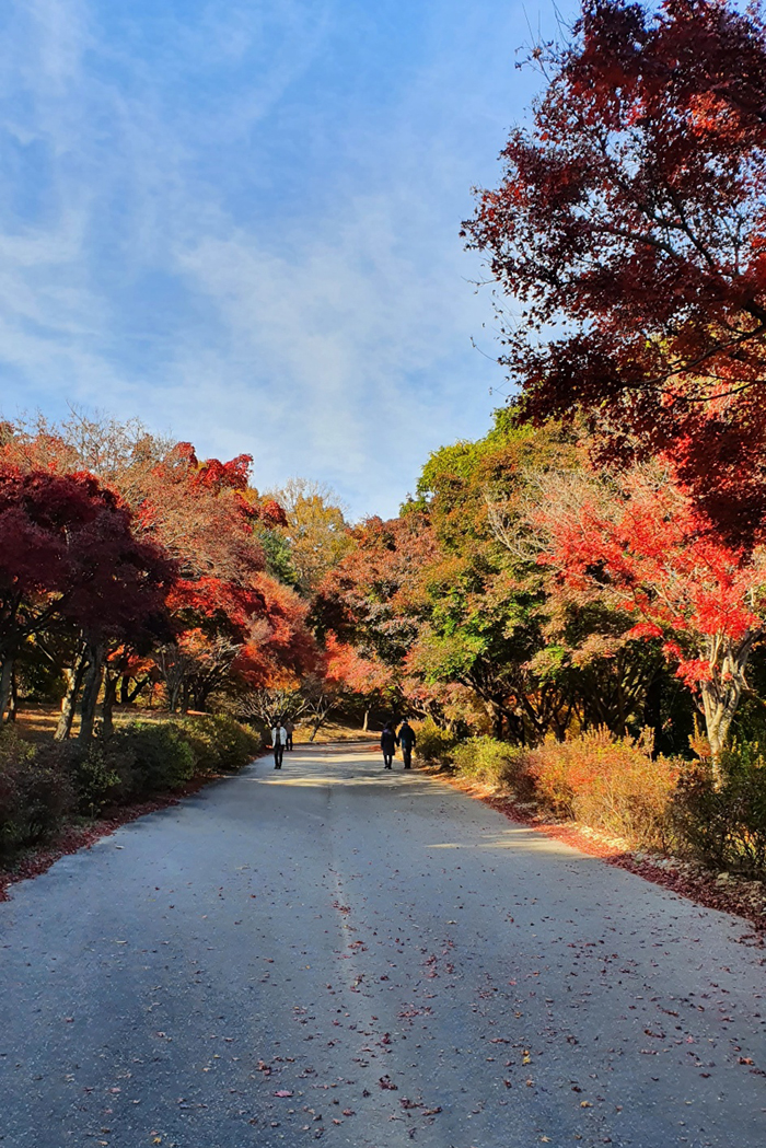다른 단풍명소들은 이미 모두 져버린 늦가을이지만, 단풍나무숲길은 늦게 물이 듭니다.