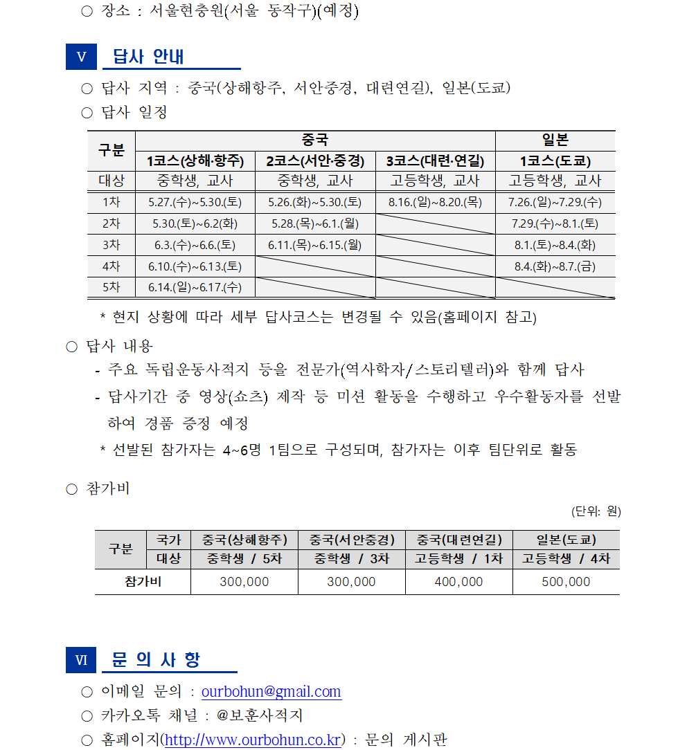 2026년 국외 보훈사적지 답사 참가자 모집 공고