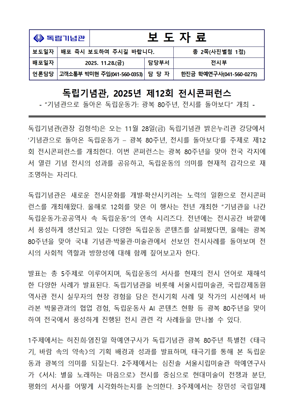 독립기념관, 2025년 제12회 전시콘퍼런스.hwp