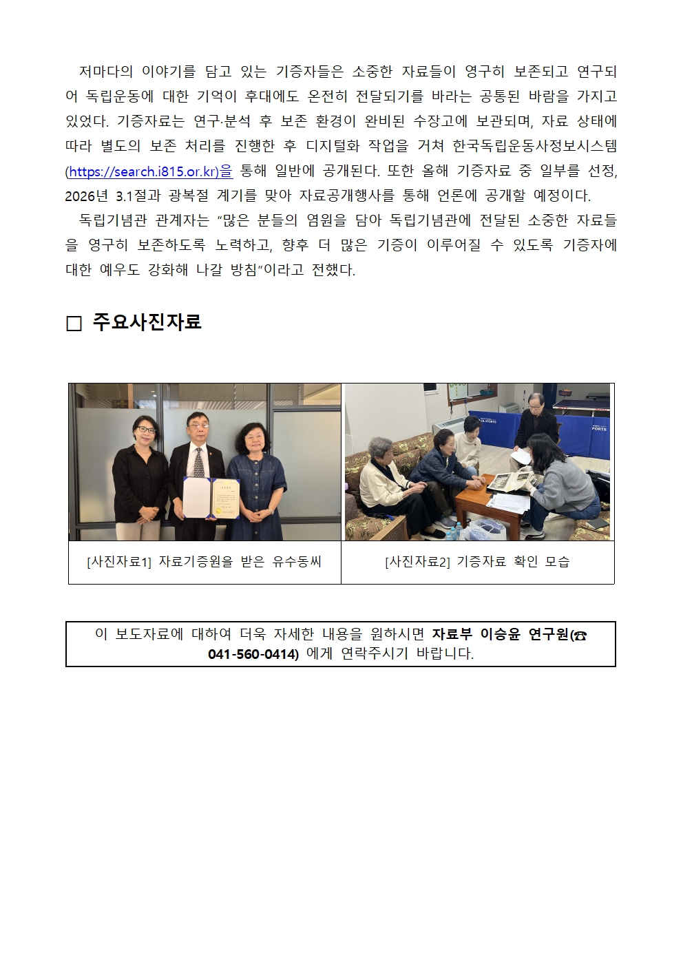 “독립운동 자료는 독립기념관으로”... 광복 80주년 맞아 자료 529점 기증 성과.hwp
